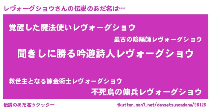 | ヒーロー風カッコイイあだ名 | 『ネオレヴォーグショウ』『暗黒騎士レヴ』 |