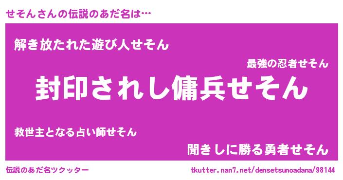 | 意味不明あだ名 | 『ペロリンせそん』『永久保存せそん』 |