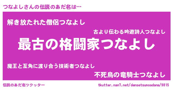 | 胡散臭い通販商品みたいなあだ名 | 『世界中を虜にした100年もののヴィンテージワイン…その名も「つなよし」』 |