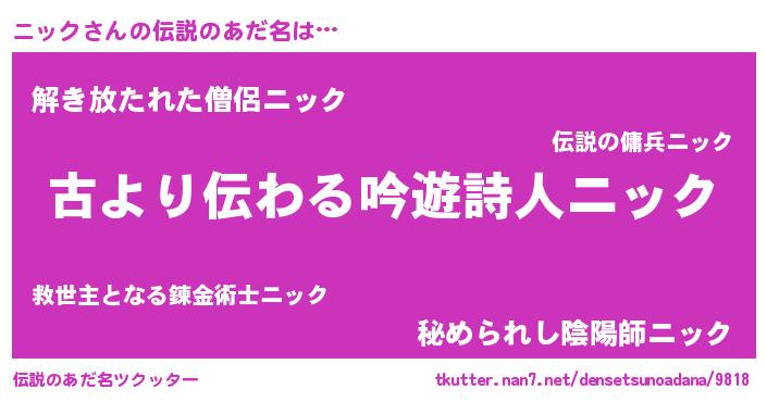 | ヒーロー風カッコイイあだ名 | 『ネオニック』『天弓騎士ニッ』 |