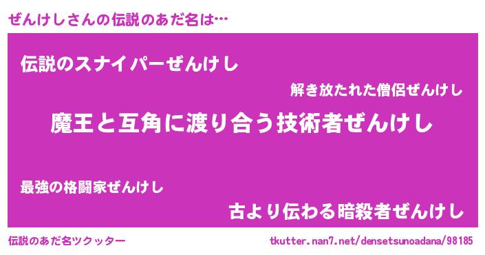 | ヒーロー風カッコイイあだ名 | 『仮面ゼンダー』『正義の使者ぜんけし』 |