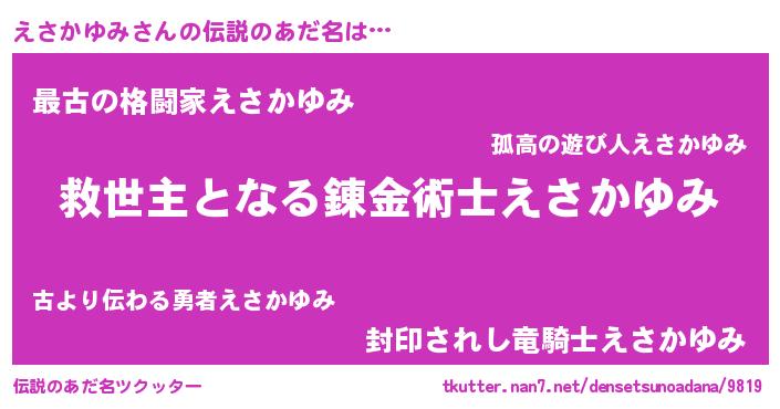 | 男性向けラノベタイトル風あだ名 | 『ノーゲーム・ノーエサカユミ』 |