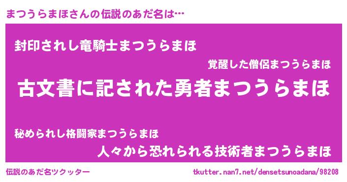 | ヒーロー風カッコイイあだ名 | 『ネオマツウラマホ』『暗黒騎士マツ』 |