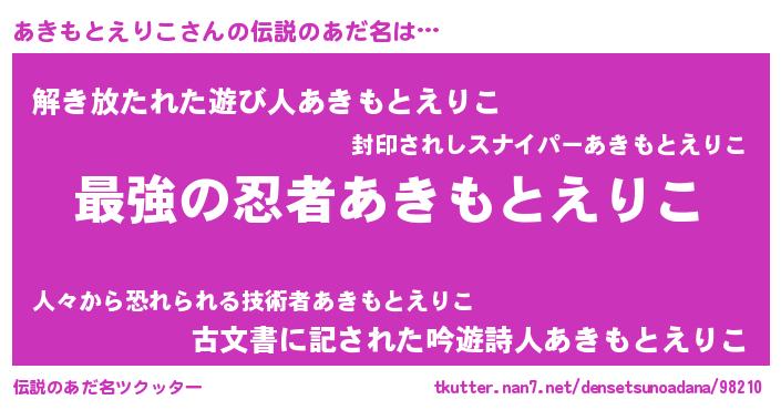 | 意味不明あだ名 | 『住所不定無職あきもとえりこ(68歳)』 |