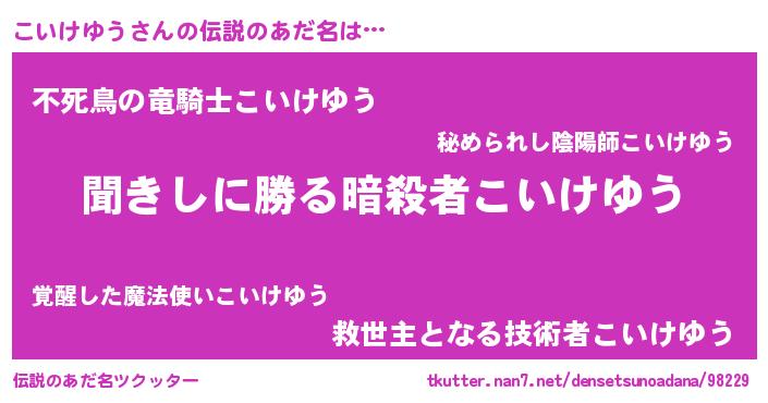 | ヒーロー風カッコイイあだ名 | 『仮面コイダー』『ネオコイケユウ』 |