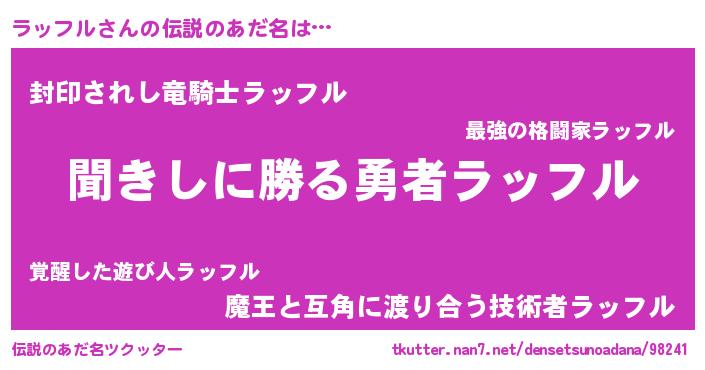 | 意味不明あだ名 | 『永久保存ラッフル』『ペロリンラッフル』 |