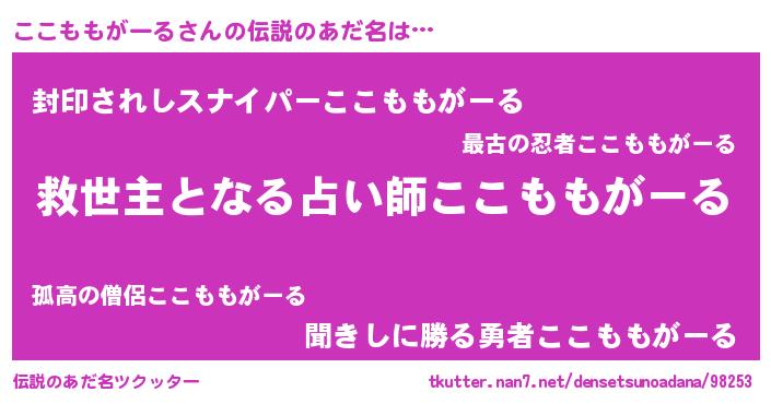 | ヒーロー風カッコイイあだ名 | 『天空の使者ここももがーる』 |