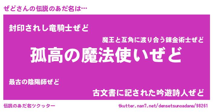 | 男性向けラノベタイトル風あだ名 | 『ダンジョンにぜどを求めるのは間違っているだろうか』 |