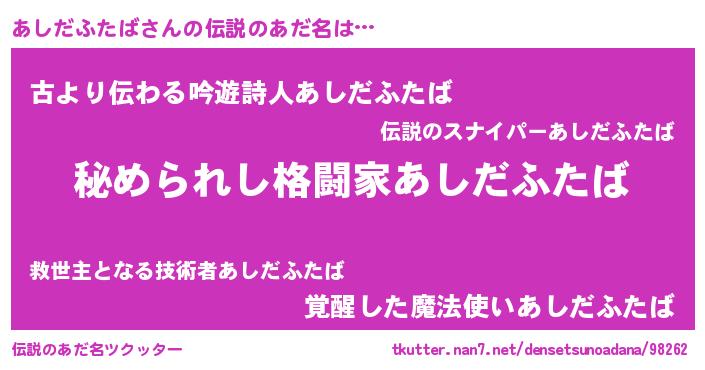 | ヒーロー風カッコイイあだ名 | 『ウルトラあしだふたばマン』 |