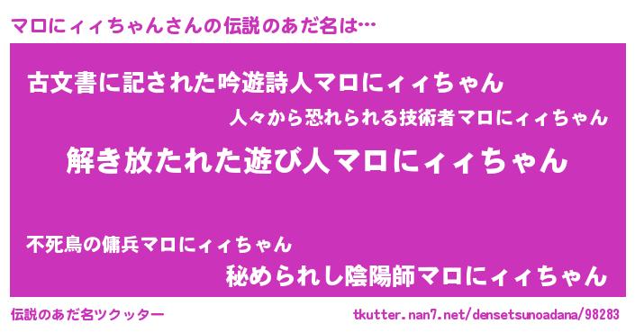 | 意味不明あだ名 | 『自称マロにィィちゃん』 |