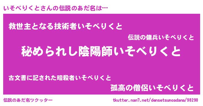 | 男性向けラノベタイトル風あだ名 | 『やはりいそべりくとの青春ラブコメはまちがっている 』 |