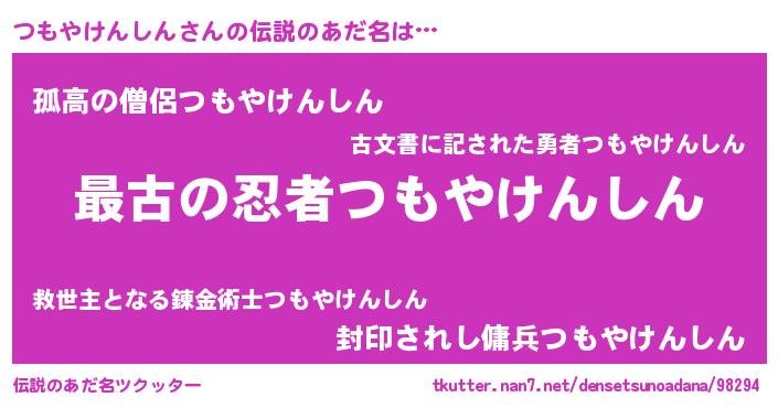 | 意味不明あだ名 | 『つもやけんしんフォーエバー』 |