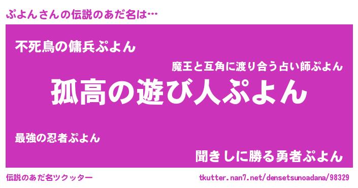 | 男性向けラノベタイトル風あだ名 | 『ダンジョンにぷよんを求めるのは間違っているだろうか』 |