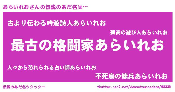 | 意味不明あだ名 | 『あらいれおフォーエバー』 |