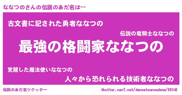 | ファンタジー風あだ名 | 『エターナルナナツノー』『クインナット』 |
