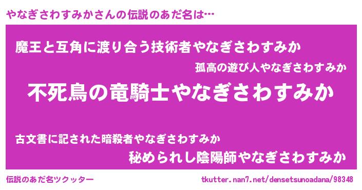 | 意味不明あだ名 | 『自称やなぎさわすみか』 |
