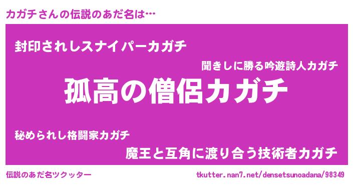 | 男性向けラノベタイトル風あだ名 | 『ダンジョンにカガチを求めるのは間違っているだろうか』 |