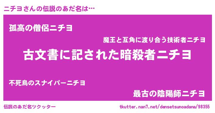 | 意味不明あだ名 | 『永久保存ニチヨ』『ニチヨフォーエバー』 |