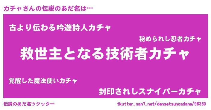 | ヒーロー風カッコイイあだ名 | 『慈愛の使者カチャ』『ネオカチャ』 |