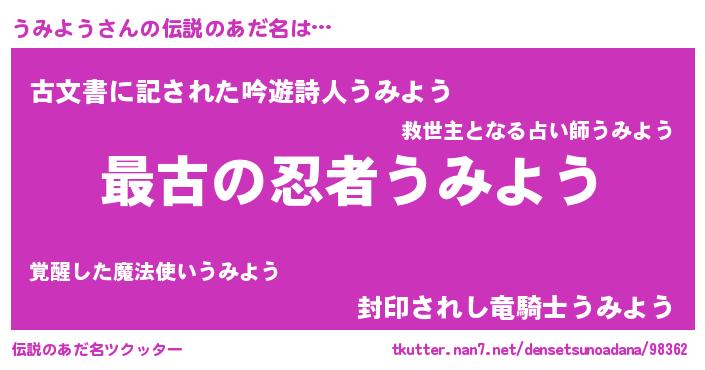 | ヒーロー風カッコイイあだ名 | 『ウルトラうみようマン』『ネオウミヨウ』 |