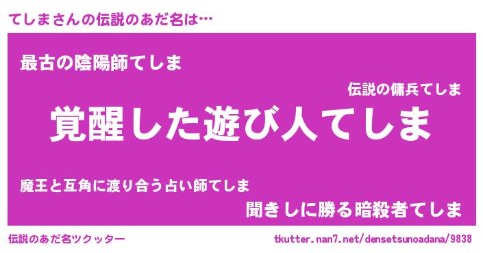 | 男性向けラノベタイトル風あだ名 | 『てしまに滅ぼされるだけの簡単なお仕事です』 |
