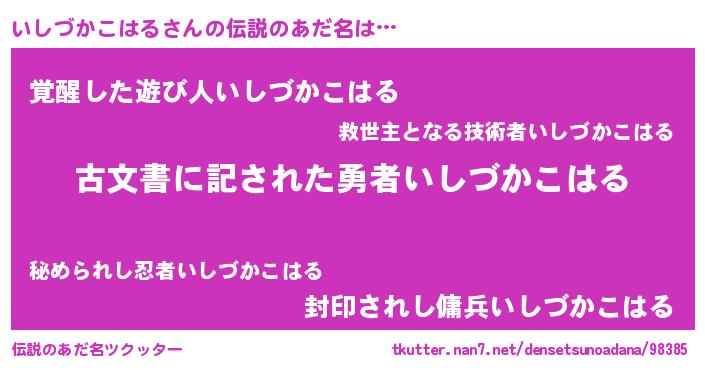 | ヒーロー風カッコイイあだ名 | 『仮面イシダー』『ネオイシヅカコハル』 |
