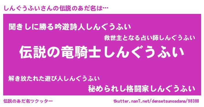 | 意味不明あだ名 | 『自称しんぐうふい』 |