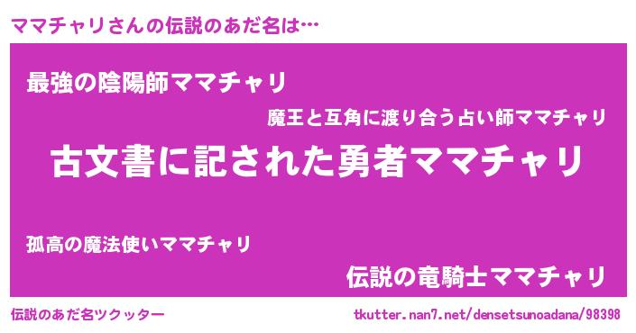 | ヒーロー風カッコイイあだ名 | 『ネオママチャリ』『仮面ママダー』 |