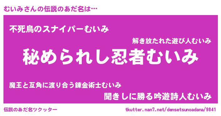 | ファンタジー風あだ名 | 『エターナルムイミー』『ゼムイトゥ』 |