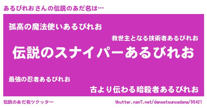 | 意味不明あだ名 | 『自称あるびれお』『ペロリンあるびれお』 |