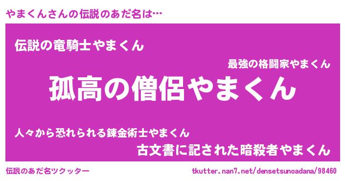 | 男性向けラノベタイトル風あだ名 | 『ダンジョンにやまくんを求めるのは間違っているだろうか』 |