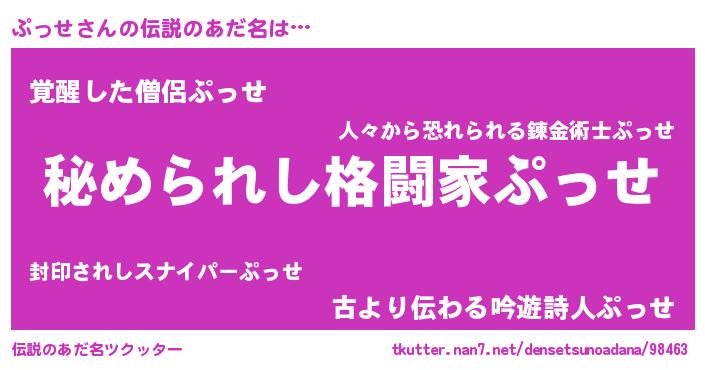 | ヒーロー風カッコイイあだ名 | 『ウルトラぷっせマン』『究極戦士プッセ』 |