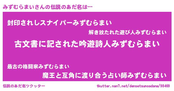 | 意味不明あだ名 | 『自称みずむらまい』 |