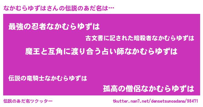 | 意味不明あだ名 | 『住所不定無職なかむらゆずは(43歳)』 |