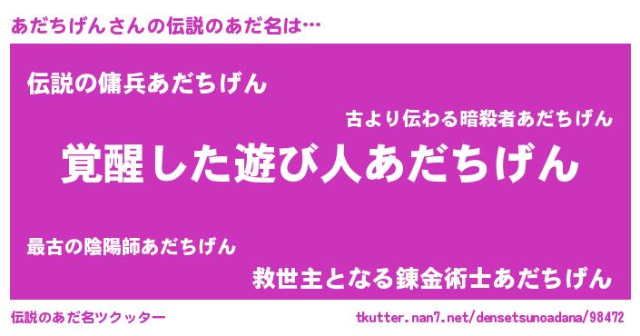 | ヒーロー風カッコイイあだ名 | 『炎刃騎士アダ』『スーパーアダチゲン』 |