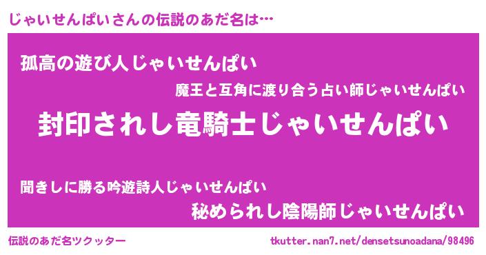 | 胡散臭い通販商品みたいなあだ名 | 『億万長者になれるブレスレット…その名も「じゃいせんぱい」』 |