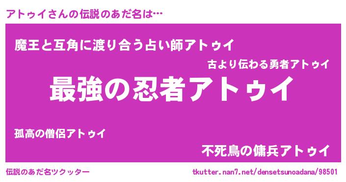 | 意味不明あだ名 | 『アトゥイフォーエバー』 |