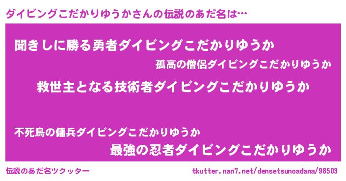 | ヒーロー風カッコイイあだ名 | 『天空の使者ダイビングこだかりゆうか』 |