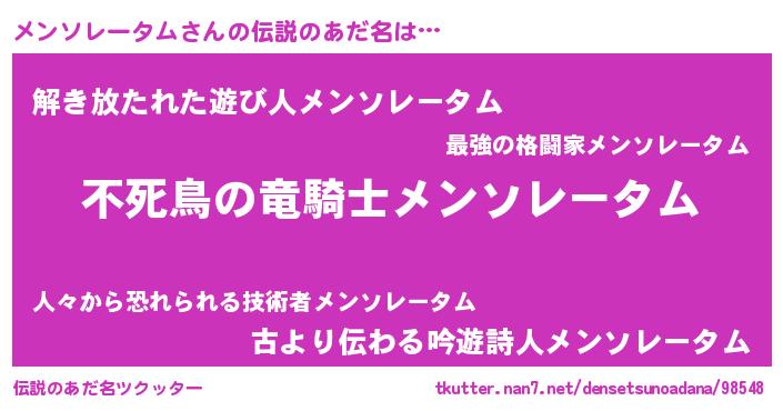 | ファンタジー風あだ名 | 『メンフェル』『ヴァルメンーナ』 |