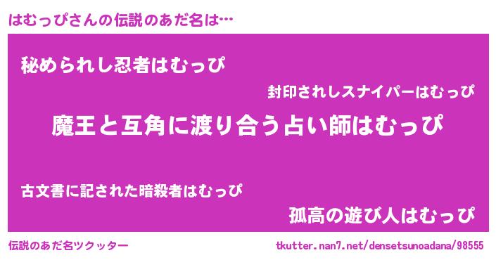 | ヒーロー風カッコイイあだ名 | 『愛の使者はむっぴ』『仮面ハムダー』 |