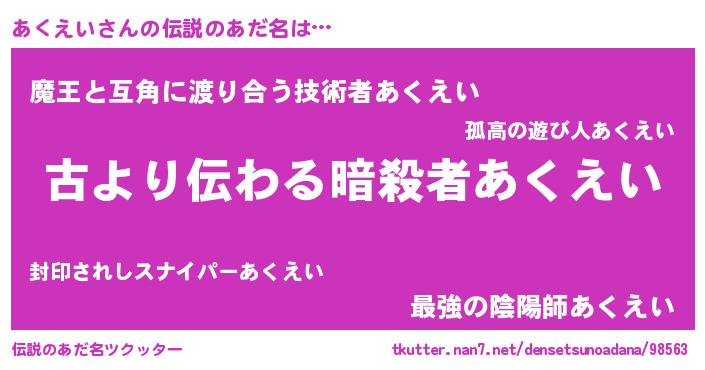 | ヒーロー風カッコイイあだ名 | 『仮面アクダー』『ネオアクエイ』 |