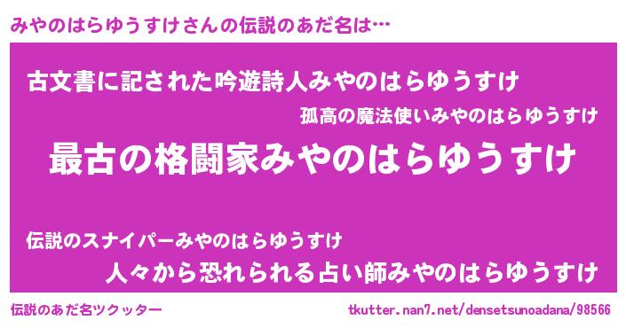 | 意味不明あだ名 | 『自称みやのはらゆうすけ』 |