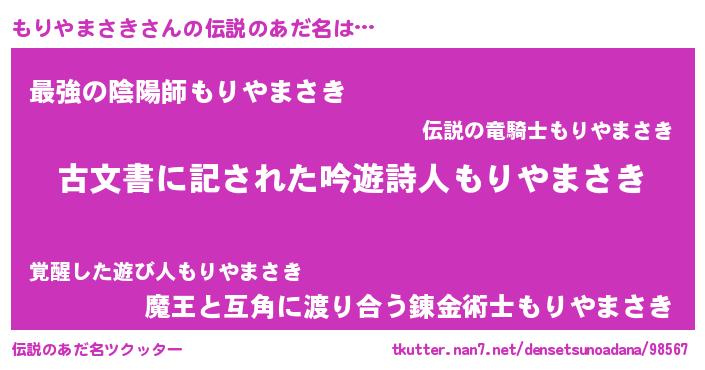 | 意味不明あだ名 | 『永久保存もりやまさき』 |