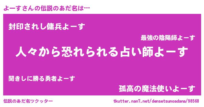 | ヒーロー風カッコイイあだ名 | 『友情の使者よーす』『スーパーヨース』 |