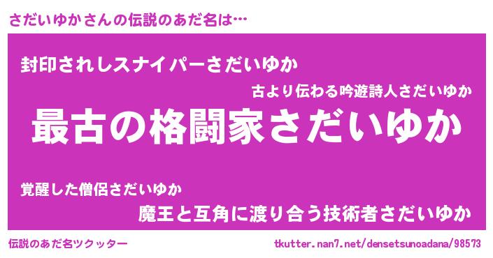 | 意味不明あだ名 | 『さだいゆかフォーエバー』 |