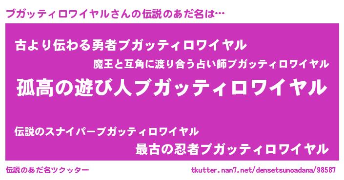 | 胡散臭い通販商品みたいなあだ名 | 『信頼と実績のペンダント…その名も「ブガッティロワイヤル」』 |