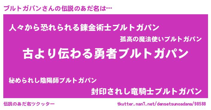 | ヒーロー風カッコイイあだ名 | 『ネオブルトガパン』『魔戒騎士ブル』 |