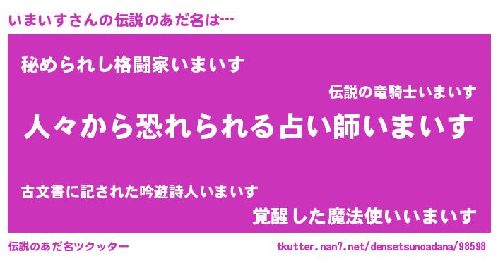 | 意味不明あだ名 | 『住所不定無職いまいす(41歳)』 |