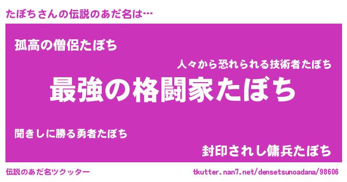 | ヒーロー風カッコイイあだ名 | 『ウルトラたぼちマン』『仮面タボダー』 |