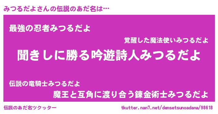 | ヒーロー風カッコイイあだ名 | 『ネオミツルダヨ』『仮面ミツダー』 |